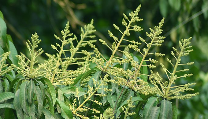 সবুজ পাতার ফাঁকে সৌরভ ছড়াচ্ছে আমের মুকুল